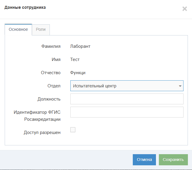 Внимание! Запрещено добавление ролей приемки сотрудникам отделов, проводящих исследования.