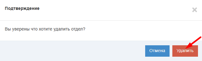 Чтобы отредактировать или удалить отдел из списка нужно нажать на соответствующую кнопку в столбце Действия напротив нужной записи.
