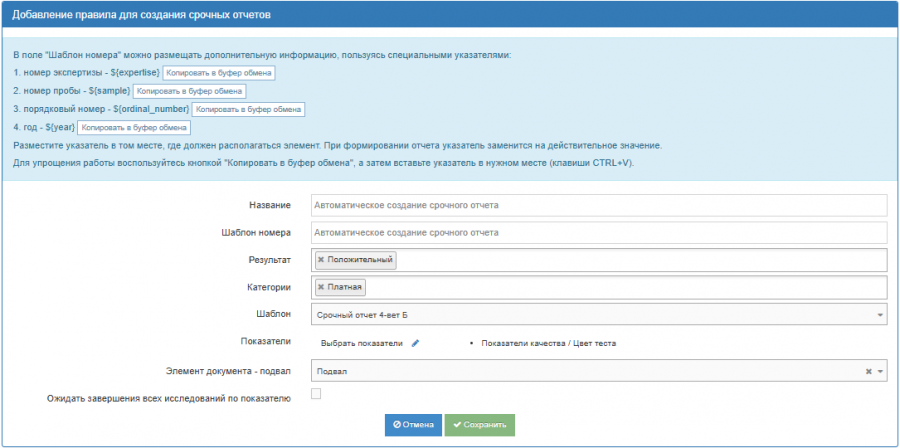 Для этого необходимо выполнить следующие операции:Правила для срочных отчетов