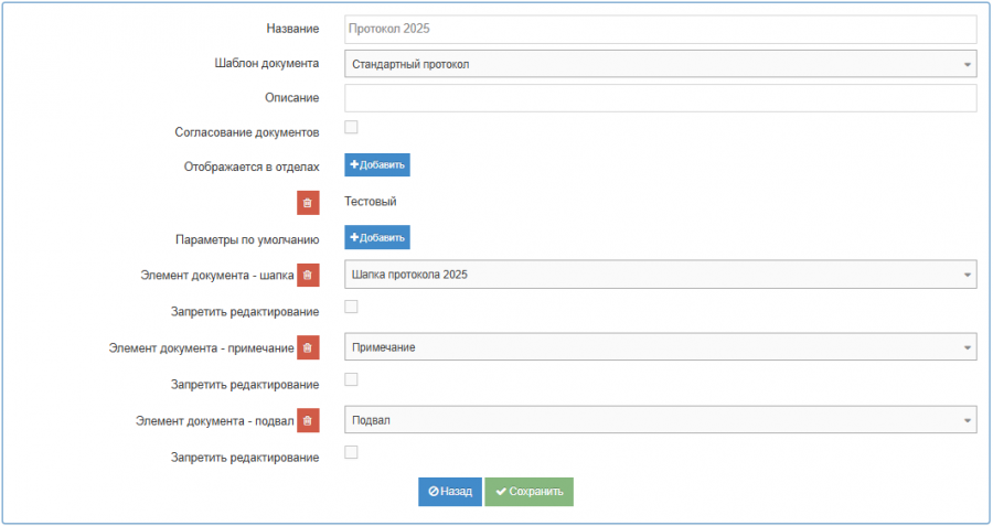 - Шаблон документа (обязательное для заполнения поле) - поле с выпадающим списком для выбора шаблона документа;