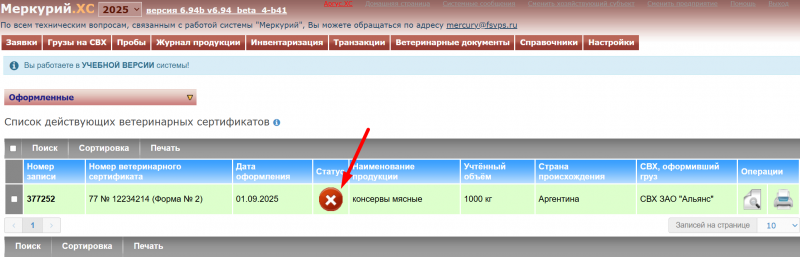 Гашение импортных ветеринарных сертификатов при поступлении продукции на предприятие в Меркурий.ХС