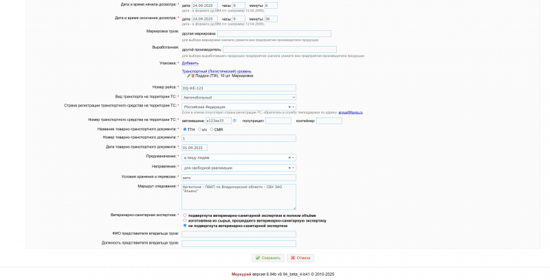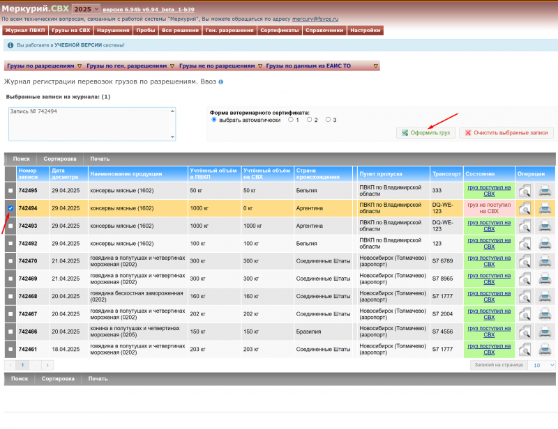 Создание ветеринарных сертификатов при импорте продукции в Меркурий.СВХ