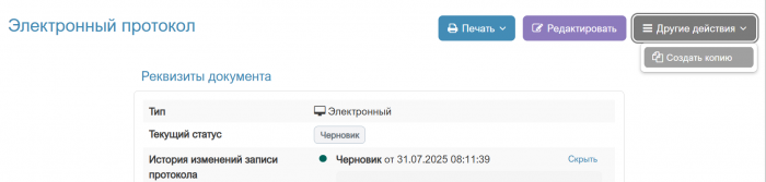 - 2. На странице просмотра черновика протокола отображаются кнопки (Рис.6).