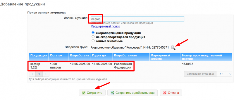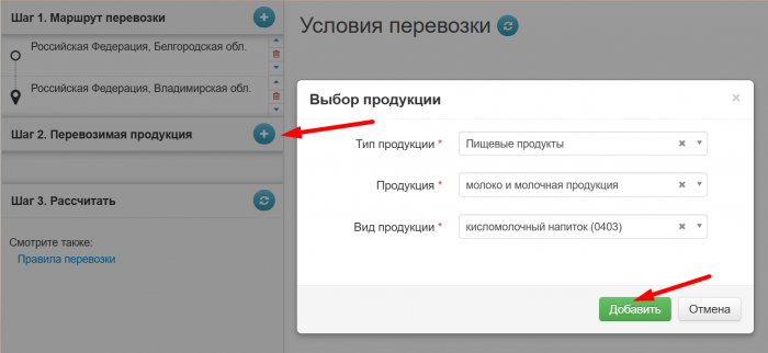 3. Добавление продукции, направляемой получателю или получателям.