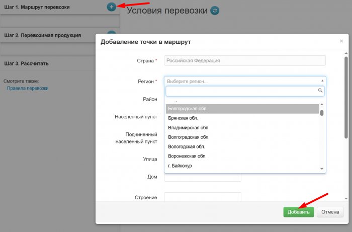 Номер допускается вводить как строчными, так и заглавными буквами, с пробелами или без. Указывать код страны (например, RUS) не требуется, т.к. система сама присвоит его после выбора страны регистрации из выпадающего списка. Укажите номера «полуприцепа» и «контейнера» при необходимости.