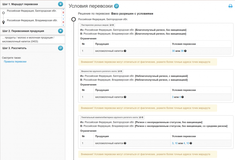 • Ветеринарное свидетельство — на все подконтрольные грузы, которые перевозятся между субъектами и между районами субъекта: