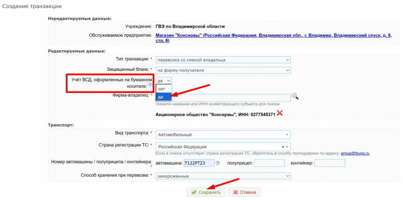 - В поле «Учёт ВСД, оформленных на бумажном носителе» выберите значение «да».